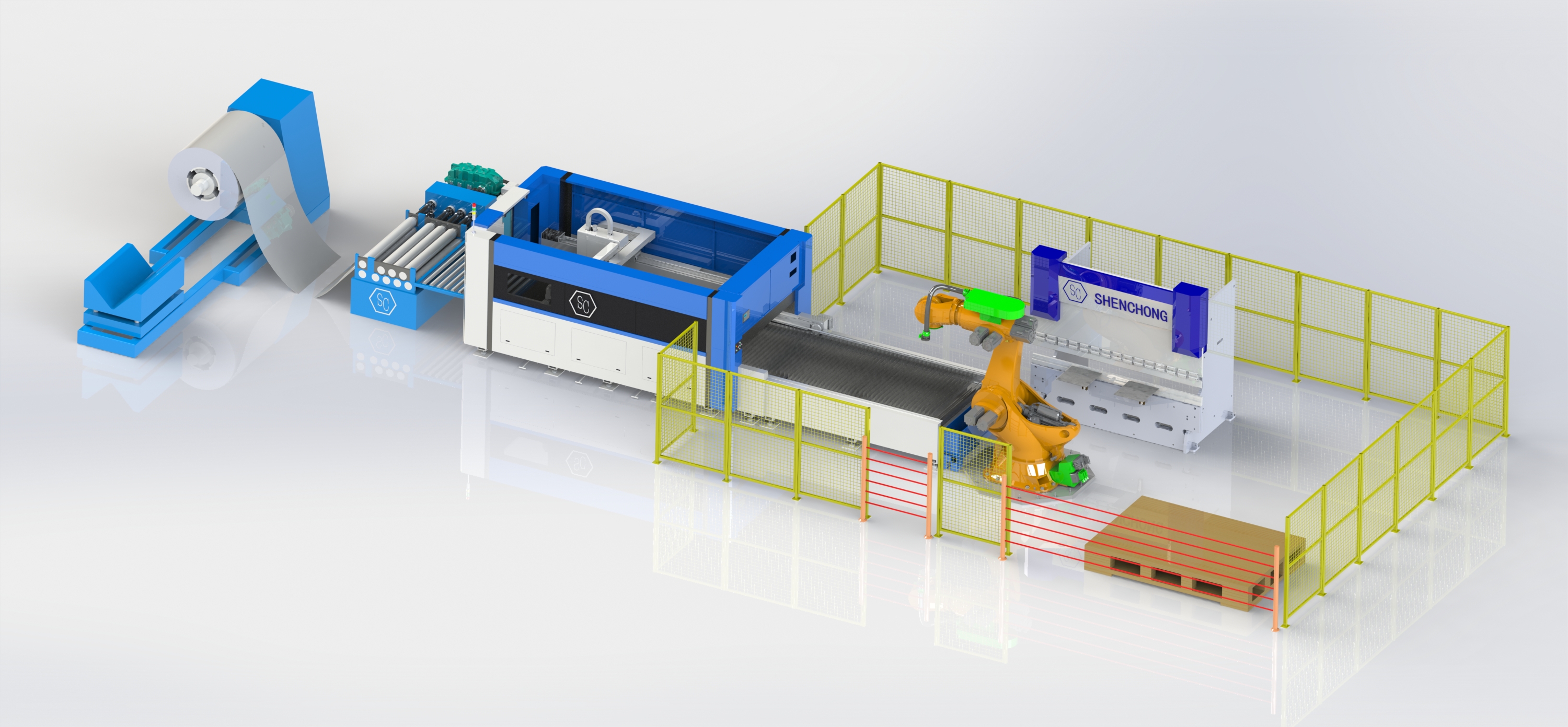 下料机器人/移栽机构:将加工完成的工作从卷板机中取出,并放置到指定位置或传送带上。